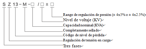 Un transformador de distribución de regulación de tensión en carga con amplio rango de trifásico,autoenfriamiento, doble devanados, bobinas, regulación de tensión sin excitación, Regulación de tensión en carga, Rango de regulación de presión 4x2.5%, del código de nivel de pérdida "13", con capacidad nominal 630kVA y de baja tensión 10kV, cuya identificación del modelo de distribución es : SZ13-M-630/10±4x2.5%