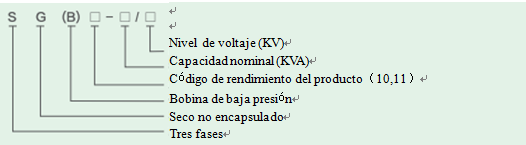 Parámetros técnicos del transformador de tipo seco no encapsulado de la serie SG(B)11-30~2500/10