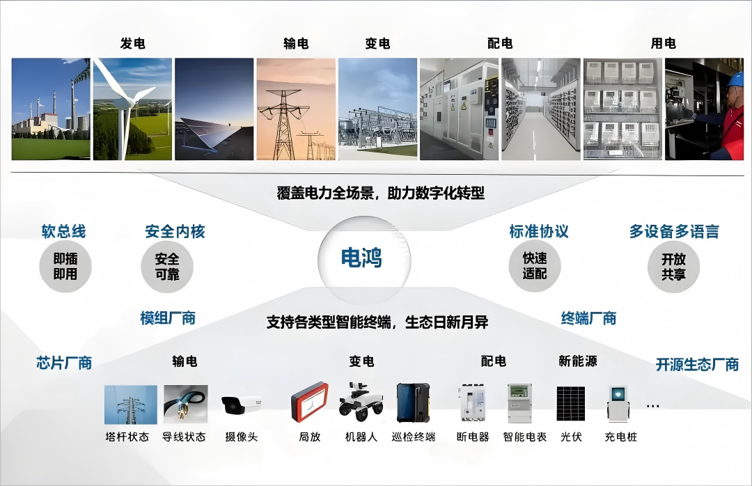 2023年10月31日,南方電網(wǎng)在北京發(fā)布了國(guó)內(nèi)首個(gè)電力物聯(lián)操作系統(tǒng)——電鴻物聯(lián)操作系統(tǒng)(以下簡(jiǎn)稱“電鴻”),首次實(shí)現(xiàn)一套系統(tǒng)覆蓋不同類型、不同品牌的電力設(shè)備,實(shí)現(xiàn)設(shè)備即插即用、海量數(shù)據(jù)互聯(lián)互通,為未來(lái)新型電力系統(tǒng)大規(guī)模物聯(lián)設(shè)備接入、運(yùn)行維護(hù)提供了一套電力物聯(lián)操作系統(tǒng)。中鵬電氣緊跟南網(wǎng)電鴻適配方向,對(duì)多款配電物聯(lián)傳感終端核心產(chǎn)品進(jìn)行了電鴻化認(rèn)證,實(shí)現(xiàn)產(chǎn)品主控電鴻、無(wú)線電鴻以及近場(chǎng)電鴻認(rèn)證,并在廣州南沙、珠海橫琴完成相關(guān)設(shè)備的應(yīng)用試點(diǎn)。中鵬已成為首批完成電鴻產(chǎn)品認(rèn)證的企業(yè)之一,目前我司已實(shí)現(xiàn)10款產(chǎn)品的電鴻化認(rèn)證,產(chǎn)品線電鴻化達(dá)到50%,預(yù)計(jì)2025年實(shí)現(xiàn)全面電鴻化。