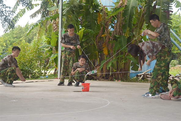 夢(mèng)想的旅程,蓄勢(shì)起航少不得要熱身一下,學(xué)員們或“勾肩搭背”“為你撐腰”,或“抱成一團(tuán)”“勾心斗腳”。
